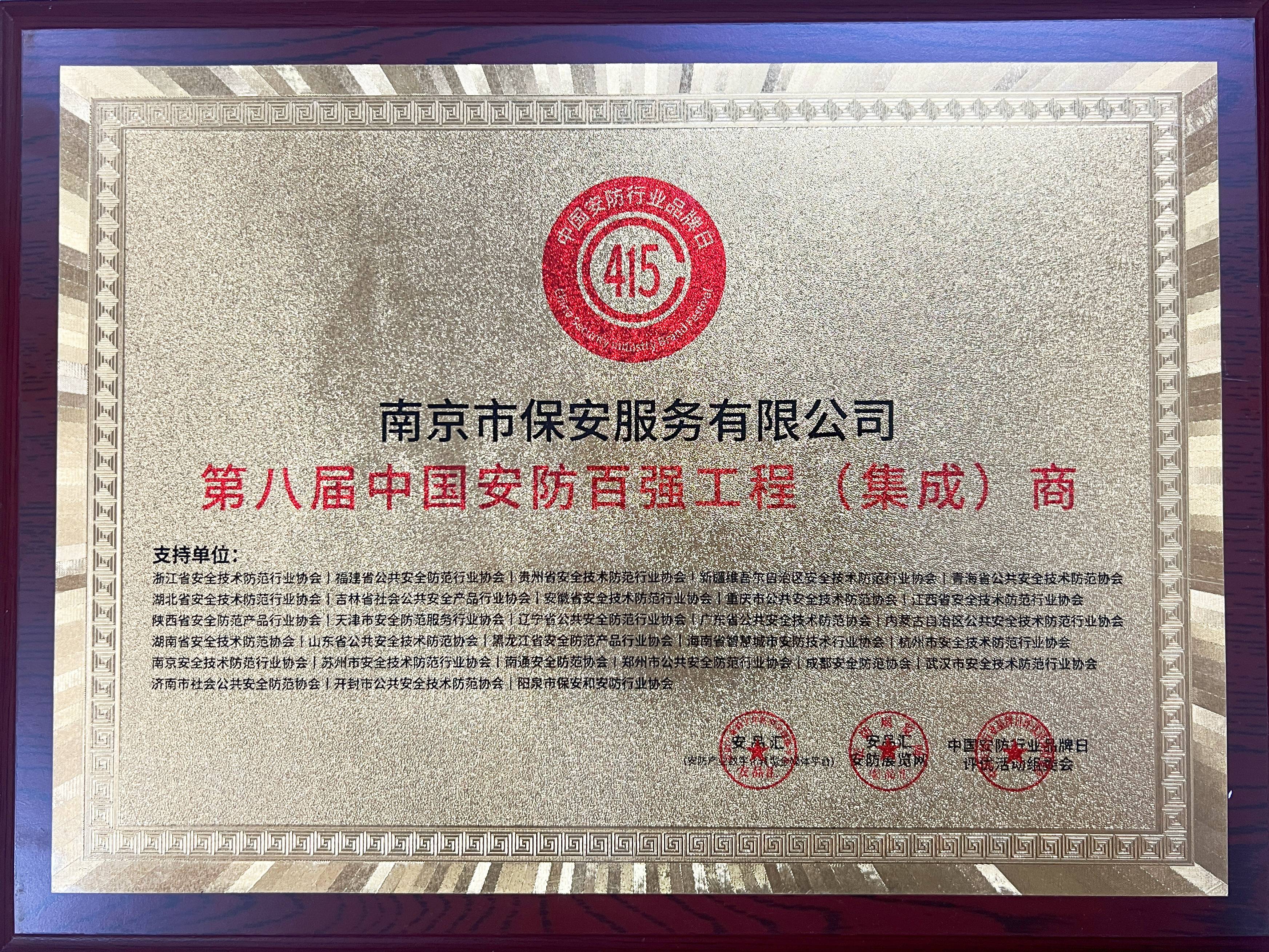 第八屆中國(guó)安防百?gòu)?qiáng)工程(集成)商榮譽(yù)稱號(hào)